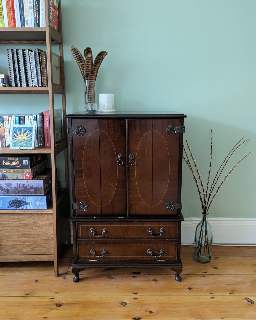 Another Facebook Marketplace find – and while it’s not a stunning mid-century piece it serves a very practical purpose of storing a lot of boardgames, plus it was a bargain at only £10! It’s fun to think that TVs used to be such a chunky shape. I like the idea that you would’ve been able to hide the TV away so as not to distract from the rest of the room. So often modern living rooms centre around a TV – I’d love to see more spaces that are focused on conversation and human interaction instead.