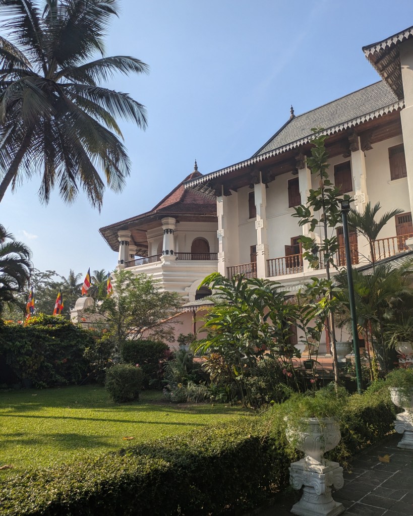 Following an al-fresco breakfast we set off for Kandy, taking part in a fascinating tour of the Ranweli spice garden on the way – a little touristy but I really enjoyed seeing what the plants for the different spices look like such as turmeric, nutmeg, cacao, ginger and cinnamon. We had a lovely lunch at the Sthree Women’s Initiative, a café and shop that G Adventures helped to build and continue to support. It was lovely to make some purchases (earrings and a scrunchie for me) knowing the proceeds were going directly to the makers. In the afternoon we visited the Temple of the Tooth, which was a beautiful building situated by the river (you don’t actually see the famous tooth in the flesh – it emerges very rarely on important occasions). When we arrived at our hotel for the evening, there was a nationwide power cut due to a monkey coming into contact with the grid transformer at a substation – I couldn’t believe it affected the whole country! Fortunately, after sitting outside the hotel with candles for a little while, the power came back on.