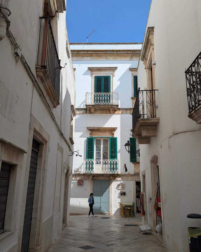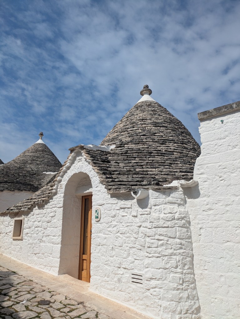 To explore Puglia you definitely need a car to get around, and we spent the next 7 days exploring the many beautiful towns in the area and absorbing all the history. We started with Alberobello, famous for its high concentration of trulli – cute cone-shaped limestone buildings, which you also see scattered around the nearby countryside. We enjoyed wandering around the town, admiring the views across the rooftops, and exploring the Trullo Sovrano museum. My sister bought some lovely pottery and we sampled some gelato too. There are even trulli houses and hotels that you can stay in should you wish. Afterwards we headed to the very pretty Locorotundo for a mosey round and enjoyed various delicious sharing plates with a stunning view of the countryside.