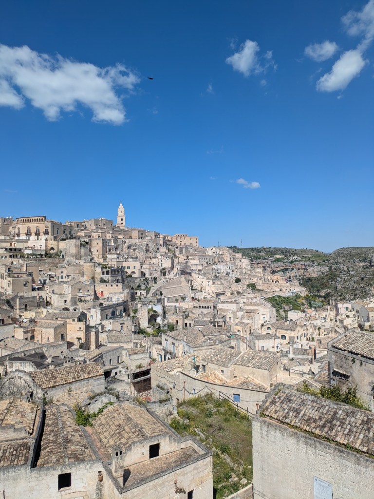 The next day we set off for Matera, which like Alberobello is a UNESCO World Heritage Site, renowned for its cave dwellings and various buildings and churches carved into the rock. It was a spectacular sight. We wandered around the city and admired the 17th century frescoes inside a church, and stepped into a reconstructed cave dwelling to see what it would’ve once been like to live there. After more delicious food in the sunshine we drove 15 minutes around to the hill opposite Matera to take in the view of the city from afar, and glimpse the once-inhabited cave dwellings.