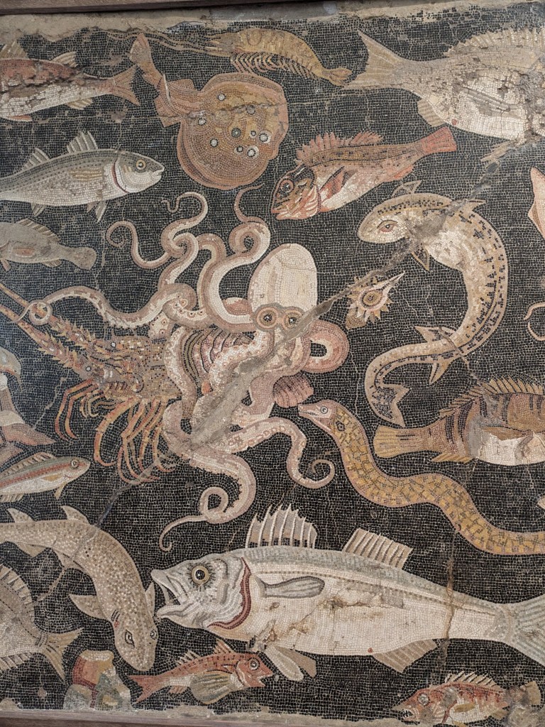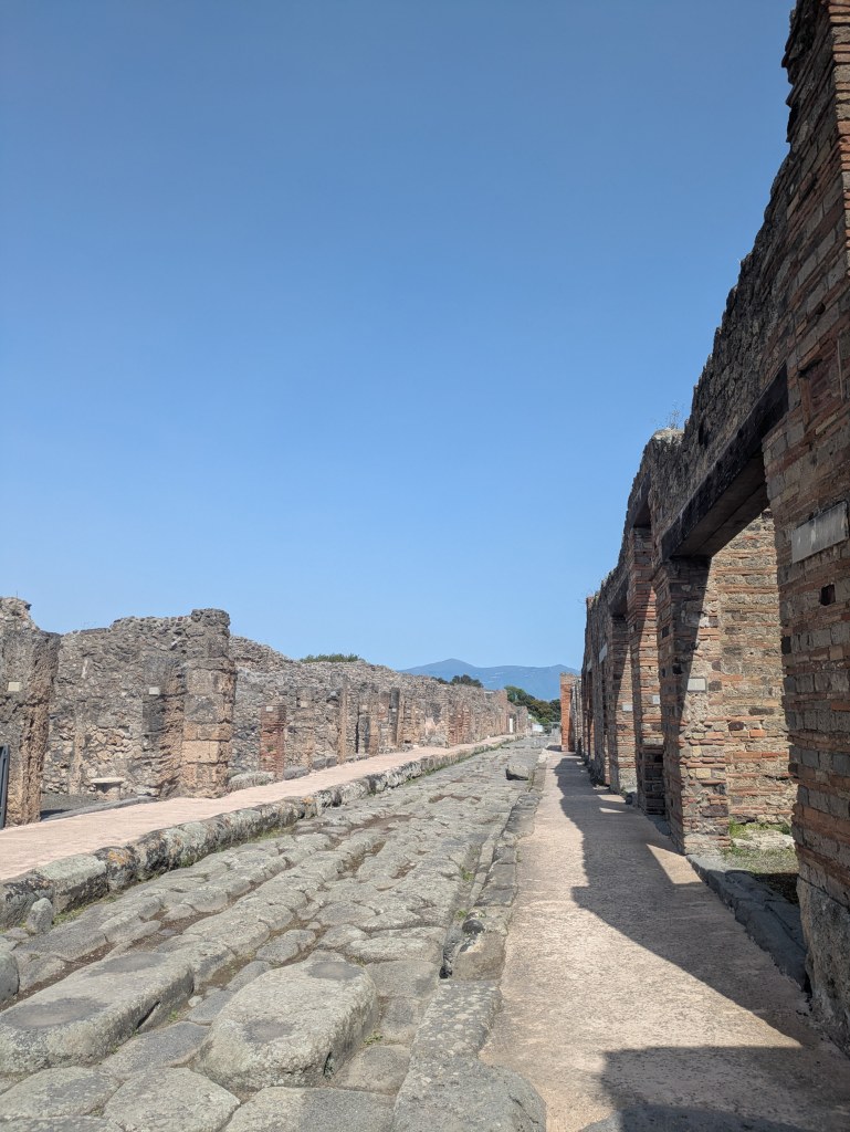 Naples felt like a real contrast to much of the rest of Italy – grittier, full of bustle, with motorbikes zipping along narrow cobbled streets and endless laundry hanging from the windows. It was so lovely to be reunited with my boyfriend and we caught up over delicious tomato bruschetta. We explored the extensive Archaeological Museum which had beautiful sculptures, incredible mosaics, a scale model of Pompeii and various artefacts and frescoes from Pompeii too, where we’d be visiting later in our trip.
