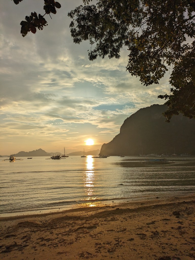 The following day followed a similar pattern, this time we opted for Tour C, and there were just 6 of us on a bangka (traditional boat). It was lovely to chat to our fellow international day-trippers. We visited more beautiful sandy bays and coves, with a lovely lunch stop at a beach we had all to ourselves! We even spotted a turtle from the bangka. I acquired a small sting from a baby jellyfish which left some tingly marks on my forearm for a little while, but luckily there was some vinegar onboard and it had faded by the morning (the adult jellyfish are only active at night, so swimming after dark is not recommended). For dinner we took a tricycle to the La Plage restaurant on Corong Corong beach and enjoyed a gorgeous view of the sunset.
